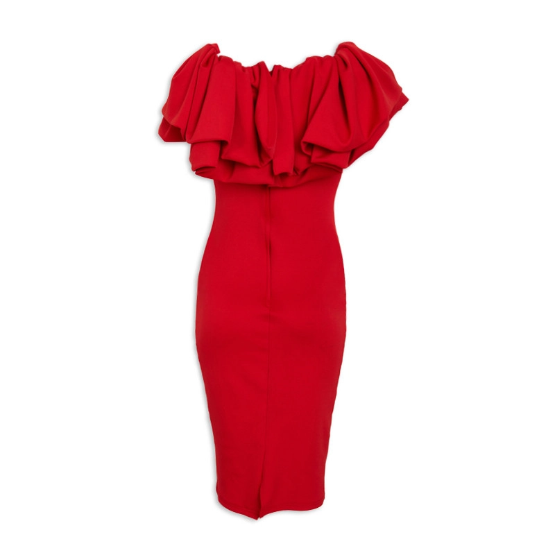 / RED BARDOT DRESS